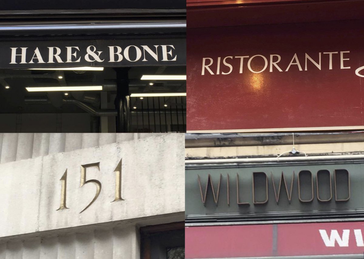 Picture 2,3: Exposure and development processes also influenced letterforms and their stroke weight. "Sharp" exposure of the font made the letters form too light; overexposure, on the other hand, resulted in blurred or deformed shapes. The outer corners of characters had to be designed with exaggerated points, and the angled connections between strokes cut deeper to counteract overexposure.