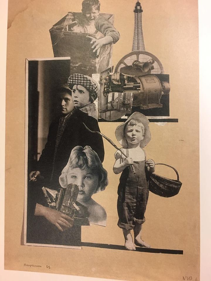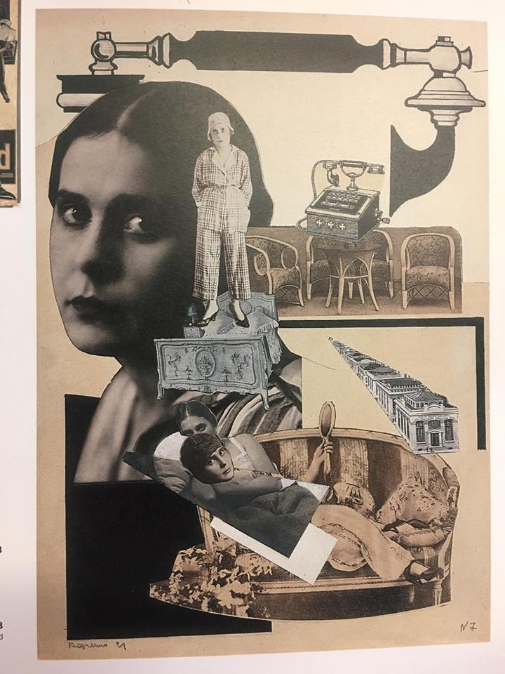 The satirical effect of the "Printed Material for Criticism" was based on juxtaposing elevated or official texts, on the one hand, with something very banal and commonplace, on the other. Names and titles of articles, magazines, artistic groups were mixed with ads recommending digestion pills or hair remedies. The resulting impression was not just a collection of texts, but an absolutely new meaning born out of the paradoxical combination. These collages were based on Constructive principles of compositional layout; diagonally placed materials, linear schemes, criss-cross reading. Rodchenko dictates the sequence of reading by using graphic accents as compositional links between lines, as well as positioning the texts beneath each other in various layers. In this way, the lines that run along the bottom layer serve as a background for the inscriptions that are placed on top and are therefore read last. It is important to keep this in mind, because photomontage also consists of several levels, devoting special space to separate shots and space for the montage itself,as certain images are glued over others.