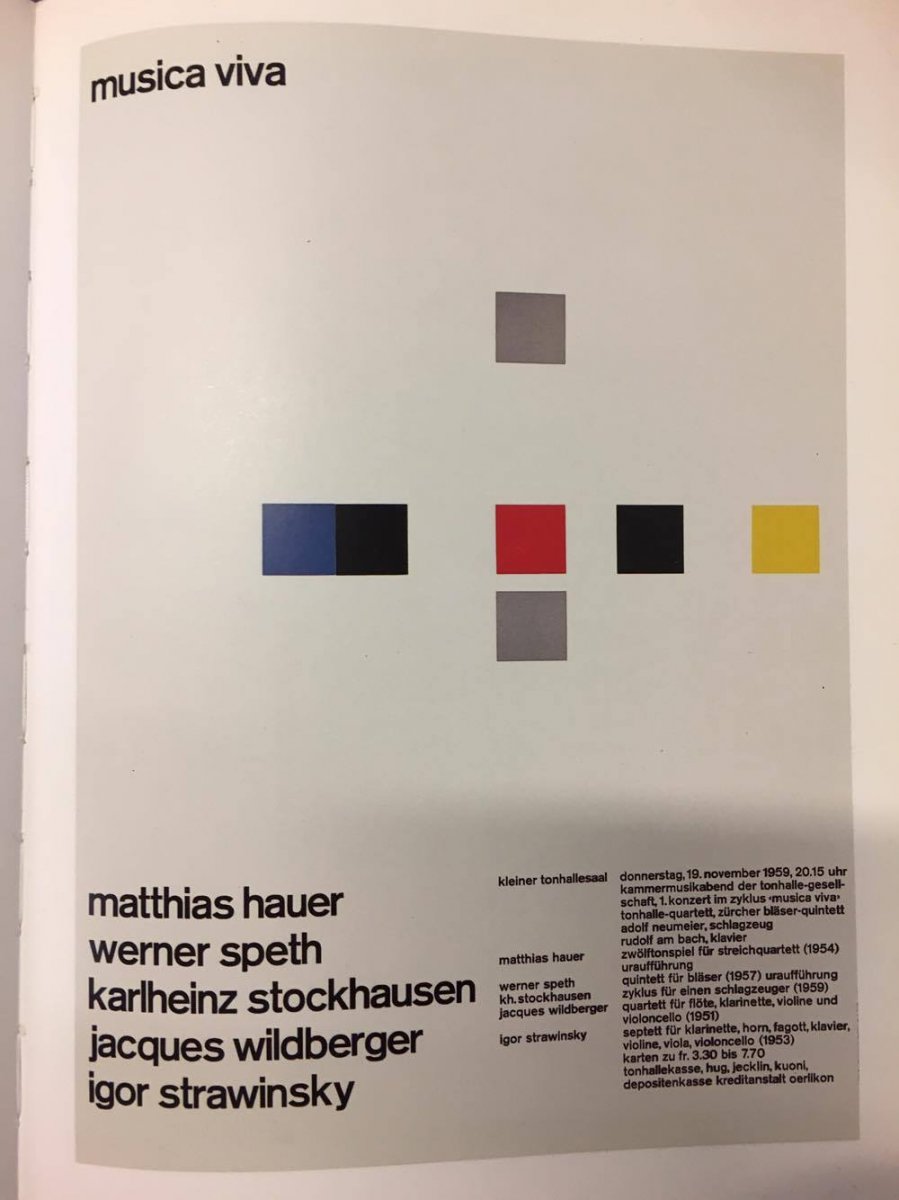 The movement’s innovators combined elements of other artistic trends to create the beauty and simplicity of the Swiss Style that we know today. Elements from Bauhaus, De Stijl and The new typography are sprinkled throughout the works of Ersnt Keller, Max Bill, Josef-Müller Brakmann and Armin Hofmann—i.e., the pioneers of Swiss Style.