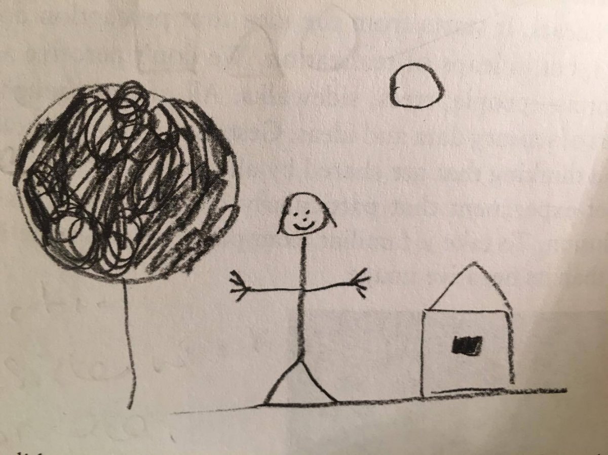 Children's drawings translate what they see into simple, generalized forms. They use straight lines, circles, squares and triangles. They do not indicate distance by differences in scale or elevation. They show flattened, frontal versions of things. And they limit themselves to a small palette of pure colors. (Picture 1)