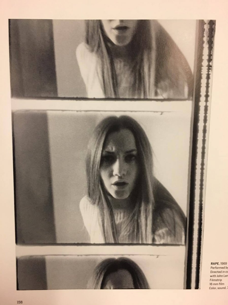 In contract, her film Rape, also shot in London in 1969, presents a dramatic intensification of male visual lust. The film was produced in collaboration with John Lennon and Shifts from fized camera position to a form of moving documentary cinematography and narrative structure. Based on a concept developed in 1967/68, one cameramen and one sound man follow a young woman selected at random from the street and stalk her, nor do they retreat; instead they pursue her stubbornly even into her flat, provoking reactions of desperation. Several reviewers expressed doubts about the authenticity of the situation presented in the film and focused on parallels to the presence of the media in the life of the artist, who had the consequences of unbridled, sexually motivated visual artist.