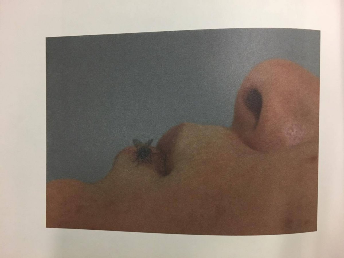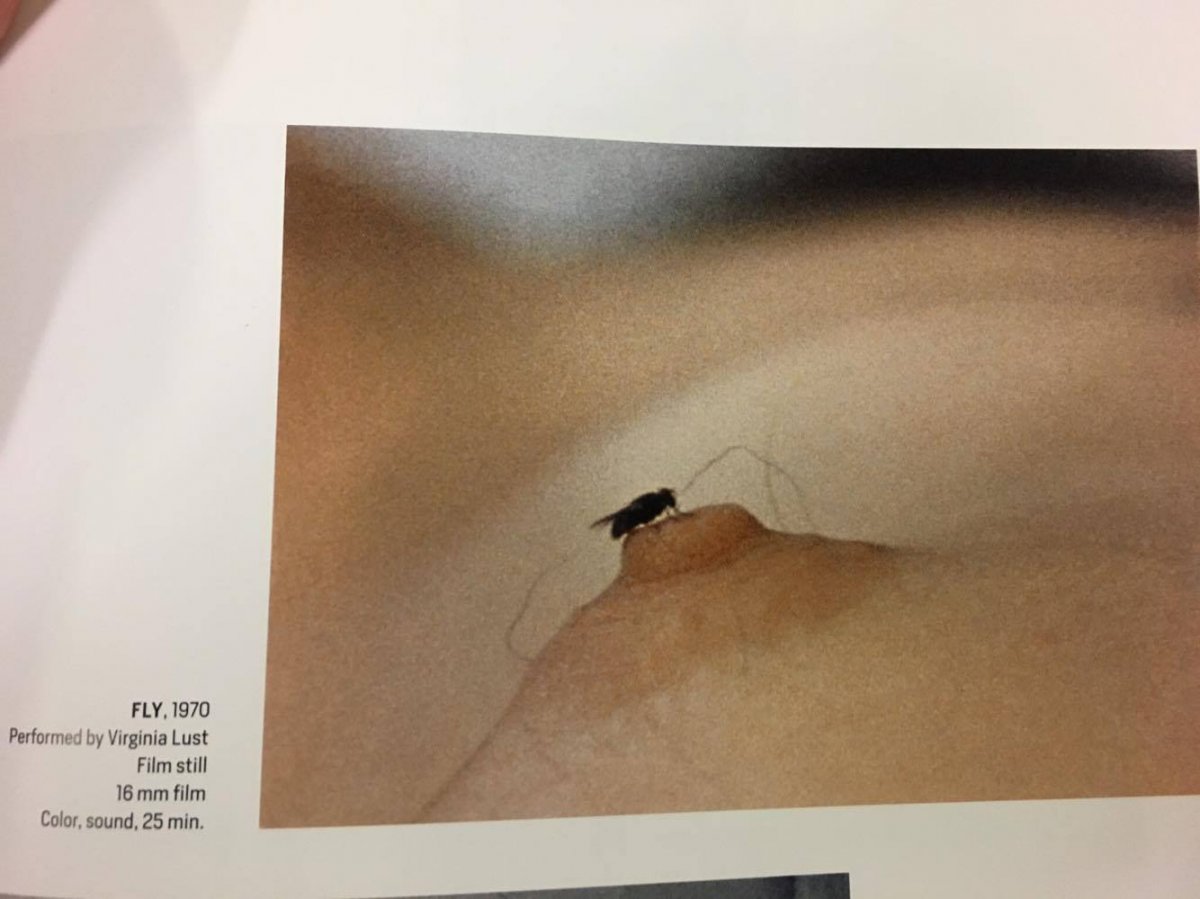 Produced in 1970, her short film Fly to which she added a sound track herself, explores the female body from the perspective of an animal. As the film focuses on the single fly rather than the woman, the insect spective is shown in close-up, while the landscape of the woman's body is presented merely as a fragmentary background. In an introduction, the artist also emphasized the "autobiographical" references to the fly and the woman