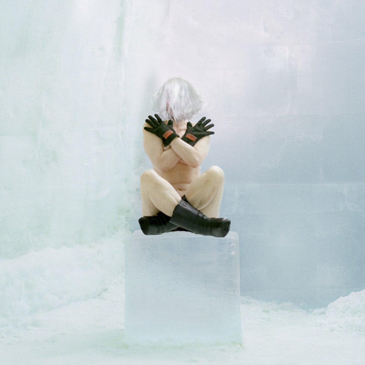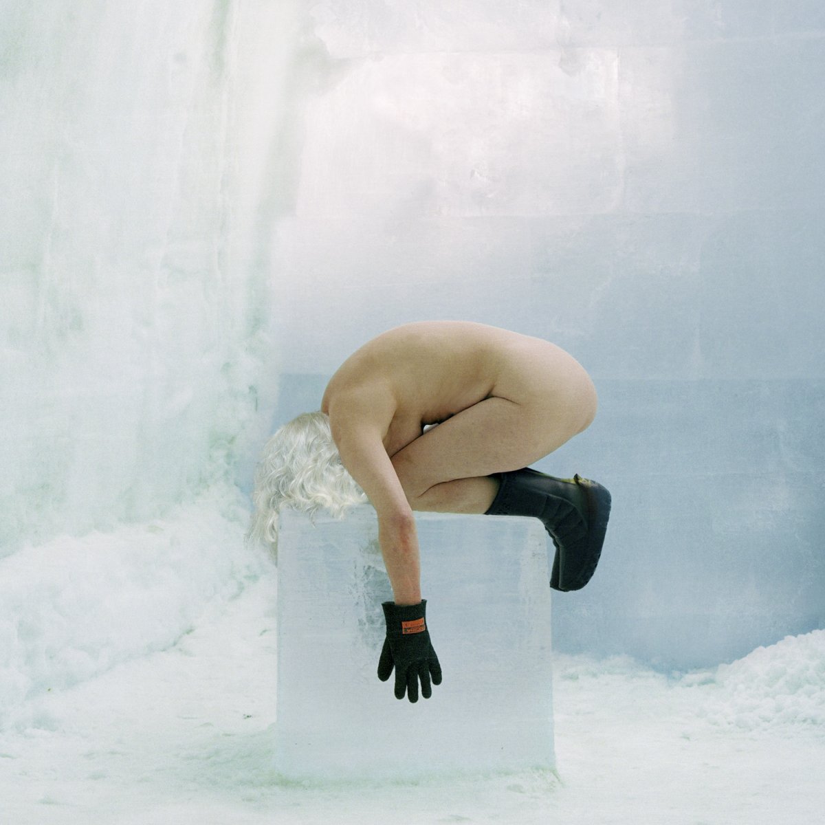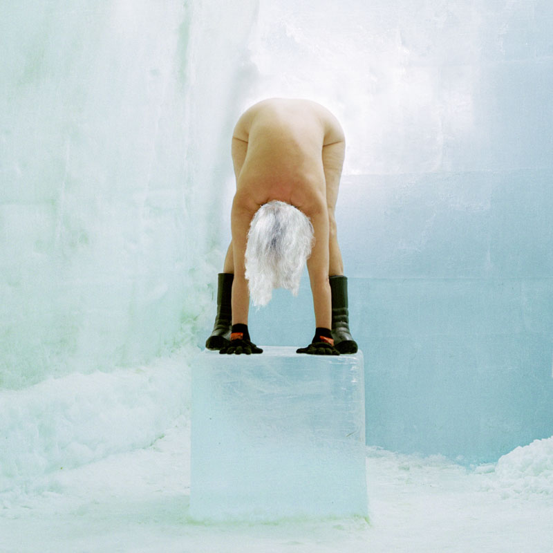 We often see her in otherwise deserted interior spaces, where her body seems to merge with its surroundings, covered by sections of peeling wallpaper, half hidden behind the flat plane of a door, or crouching over a mirror. Found objects and suggestive props are carefully placed to create unsettling, surreal or claustrophobic scenarios. Her photographs are produced in thematic series’, relating to specific props, places or situations.