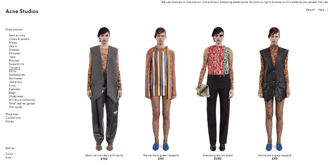 From Acne studios website woman's wear/ Using man's model