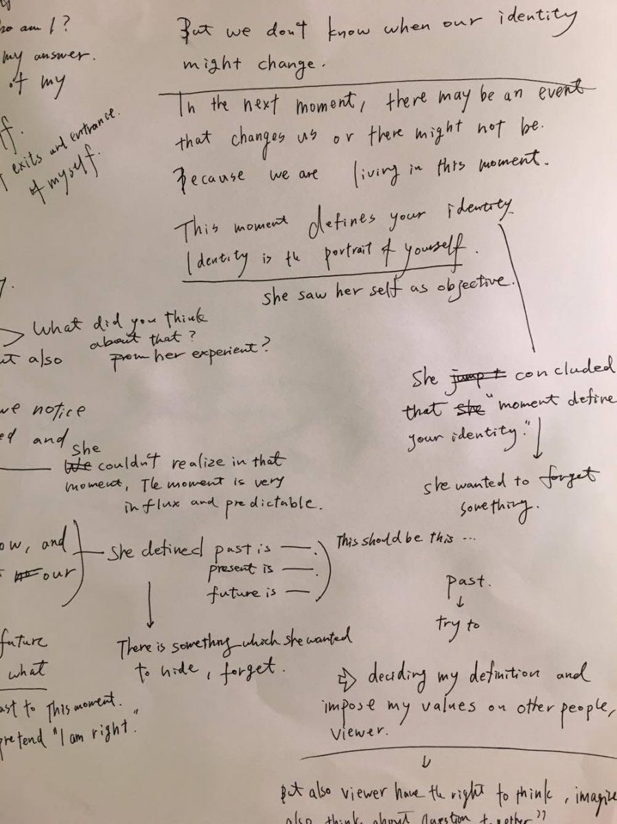 Female gaze. A gaze that models from the inside to the out side, from the outside to inside. We are tied by female gaze. We tied ourselves. and then make our own world where is critically in between identities that seek escape and disengagement from the female form. and then ask question to our selves. It is a repetition like an incantation. We wish we could recognize our existence from other people? Ask many times, think about it many times. What is my identity? Where am I? What am I doing? Who am I?