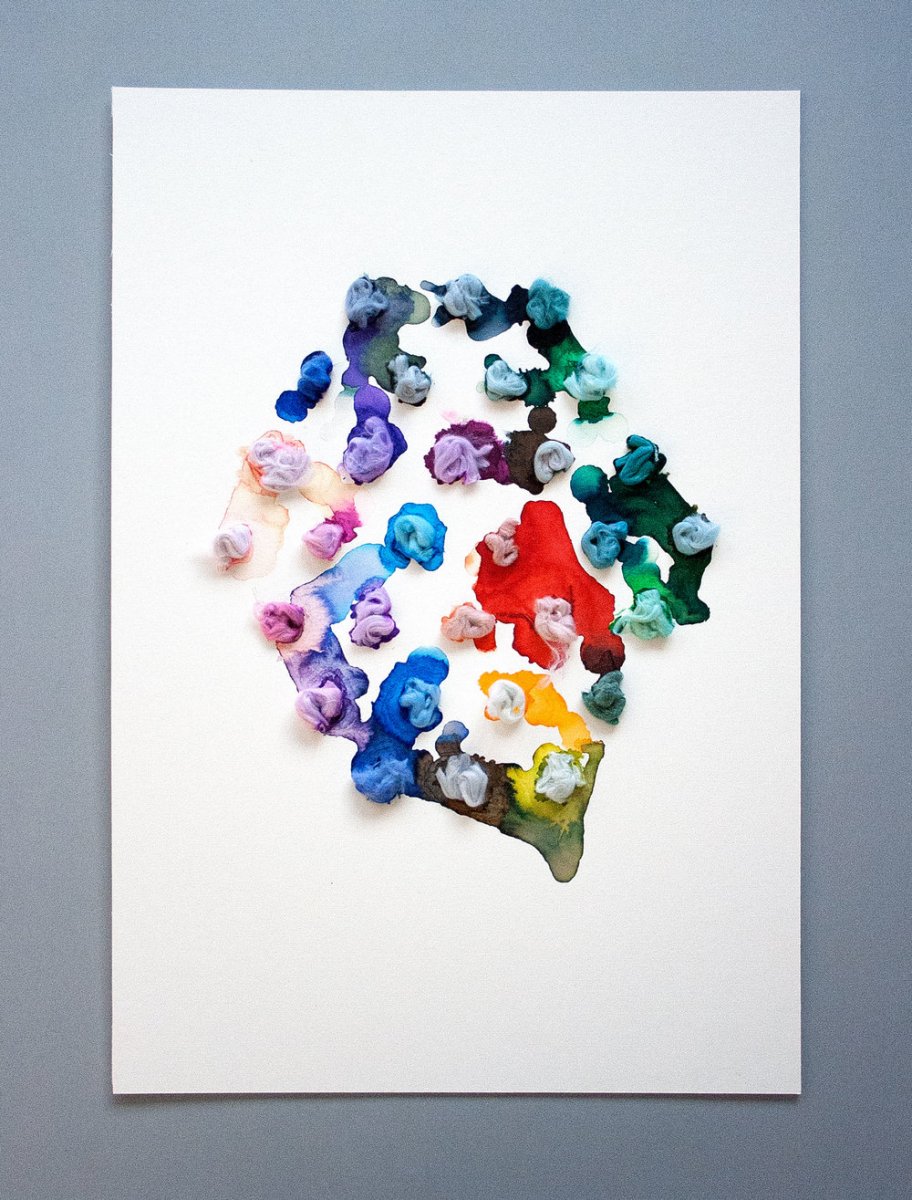 The lush "coloured-shadow" range seems to build the form and model conventional volume. In this way, a so-called shadow is denoted by a primary colour, with the gradual transition to a maximal light value conveyed by a highly whitened colour and pure white.