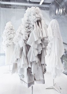 Summer 2012 Comme des Garçons collection for an exhibition at Musee Galliera in Paris. The provocative all-white oeuvre (its wearable version currently in stores worldwide) is at the Cité de la Mode et du Design, the Galliera's temporary location until its renovations are complete next year.